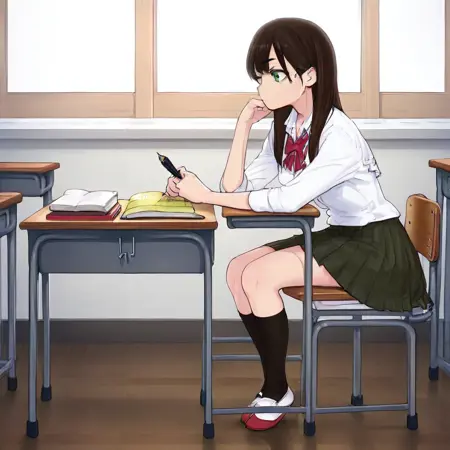 テーブルの下に足を隠して座っているキャラクターを描くために作成されました。