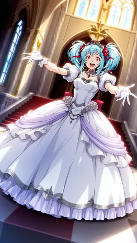 외모: 파란 머리, 붉은 눈, 쌍머리,