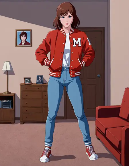 彼女のアルバム登場用には、「長袖」「赤いジャケット」「レターマンジャケット」「デニム」「青いジーンズ」などが推奨される。
