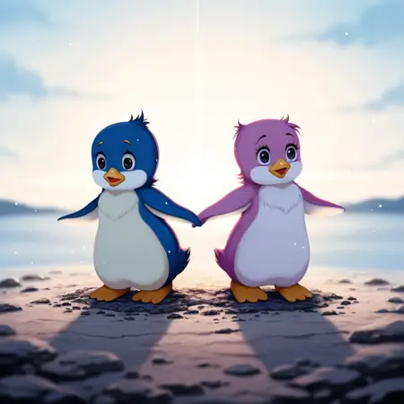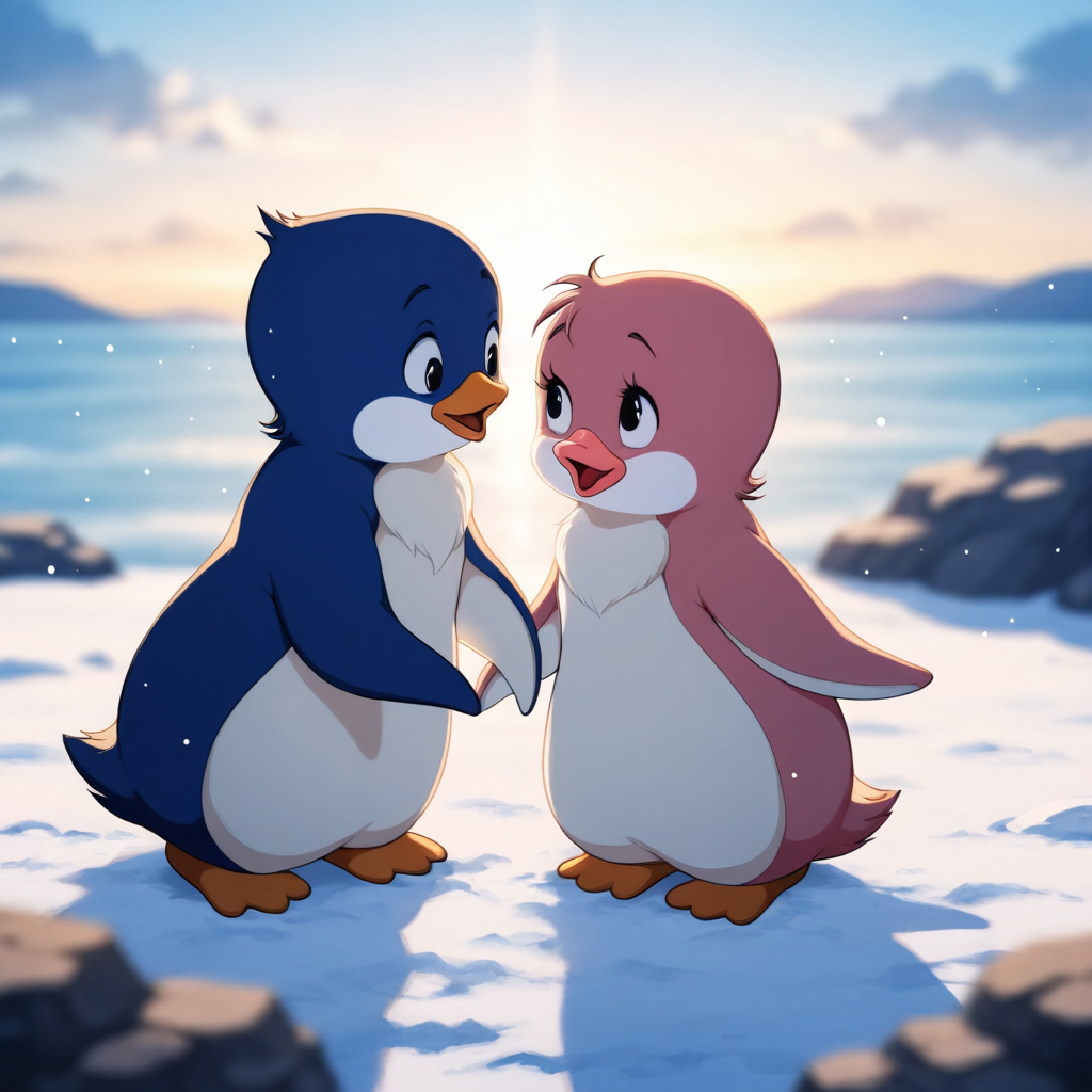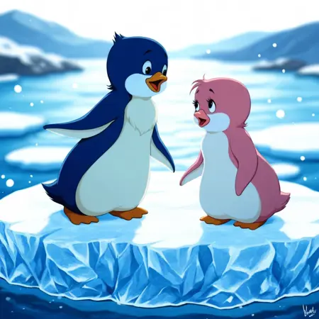 duo, cub, 펭귄, Lolo, Pepe, 1boy, 1girl