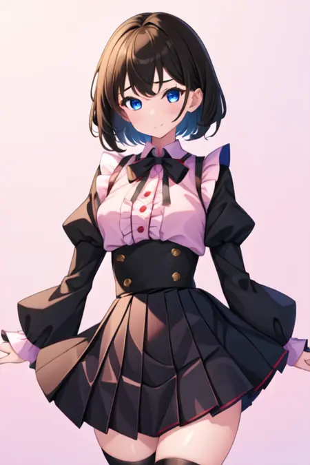 이 LoRA는 필수적이지 않습니다. 분홍 셔츠, 넥리본, 프릴, 검은 스커트, 주름 스커트, 긴 소매, 풍성한 소매, 하이웨이스트 스커트, (검은 리본), 빨간 셔츠, 검은 허벅지 양말을 사용하여 전형적인 스타일을 생성할 수 있습니다.