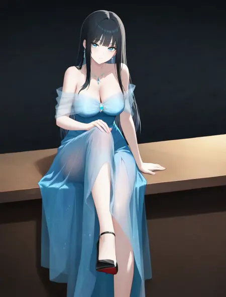 blue dress,bare shoulders,off shoulder,off-shoulder dress,long dress,see-through,