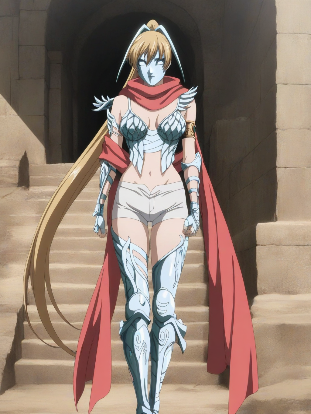 汎用:金髪、長い髪、ポニーテール、非常に長い髪、赤いスカーフ、白いショートパンツ、腕輪、青い目