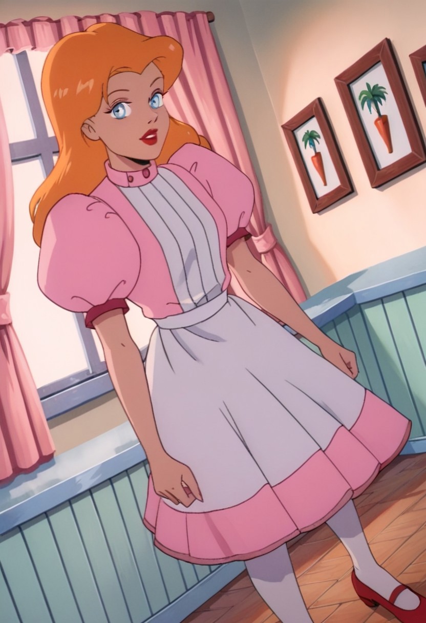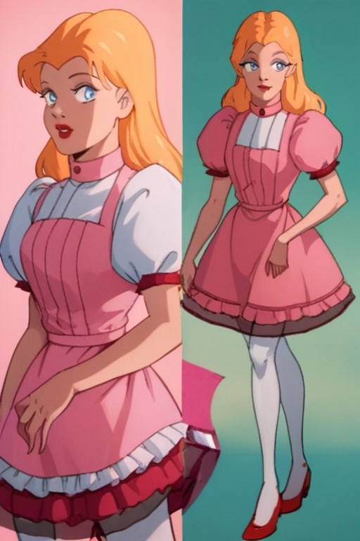 JetLagAlice, 1girl, orange hair, blonde hair, long hair, makeup, lipstick, red lips, blue eyes,