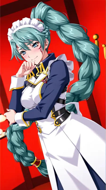 복장: 군복, 허벅지 길이 양말, 흰 장갑,
