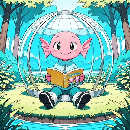 부드러운 분홍색 피부, 넓고 호기심 가득한 눈, 항상 놀란 듯한 표정을 지닌 아쿠는 온화하고 조용하며 이상한 식물을 키우고 조류 기반 간식을 만드는 데 뛰어나기로 유명하다.