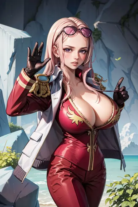 hina, gloves, eyewear on head, military uniform, pink jacket
