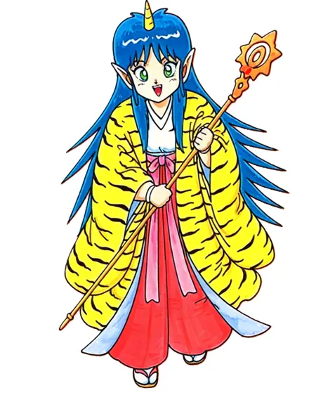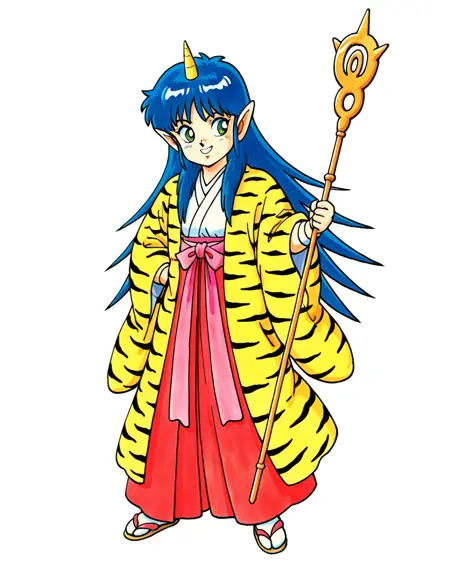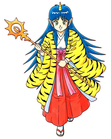 SFC 신 모모타로 전설: 적 캐릭터 야샤히메, 지팡이 소지, 부드러운 표정