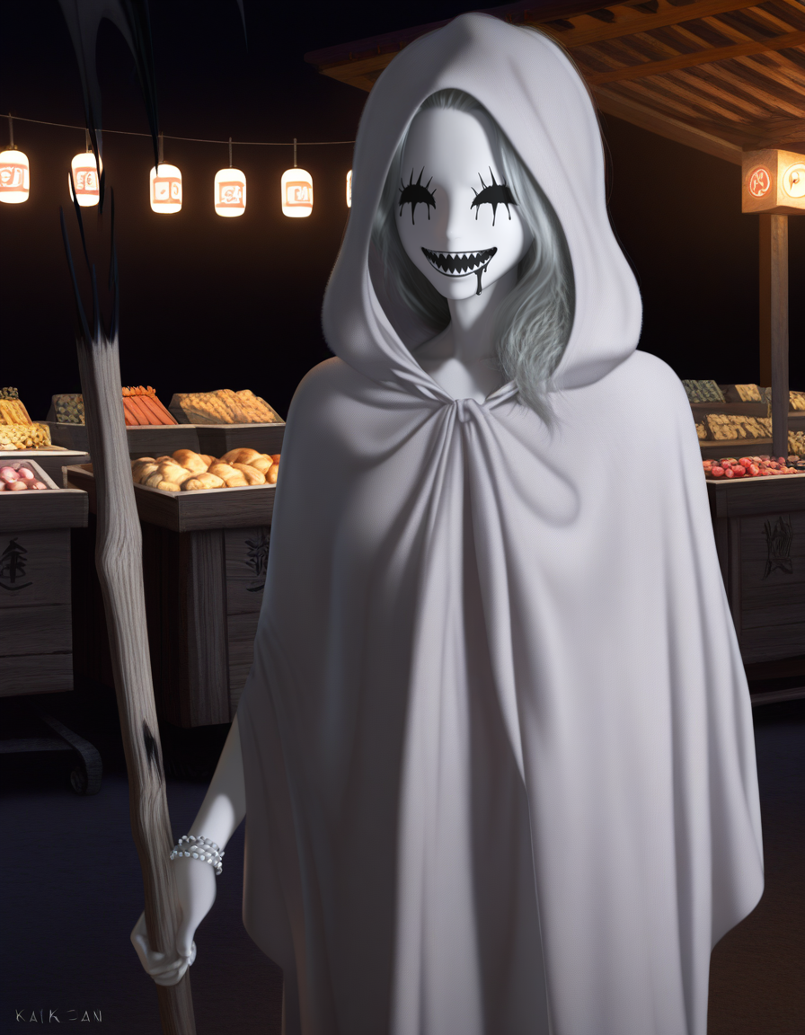 在负面提示中加入“skull”,因为AI总认为她应该有一张骷髅脸。
