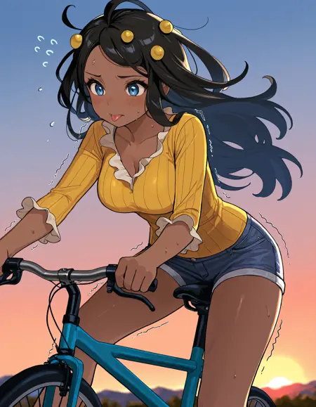 Additional trigger prompts to help with accuracy: black hair, blue eyes, dark skin, dark-skinned female, hair ornament, long hair