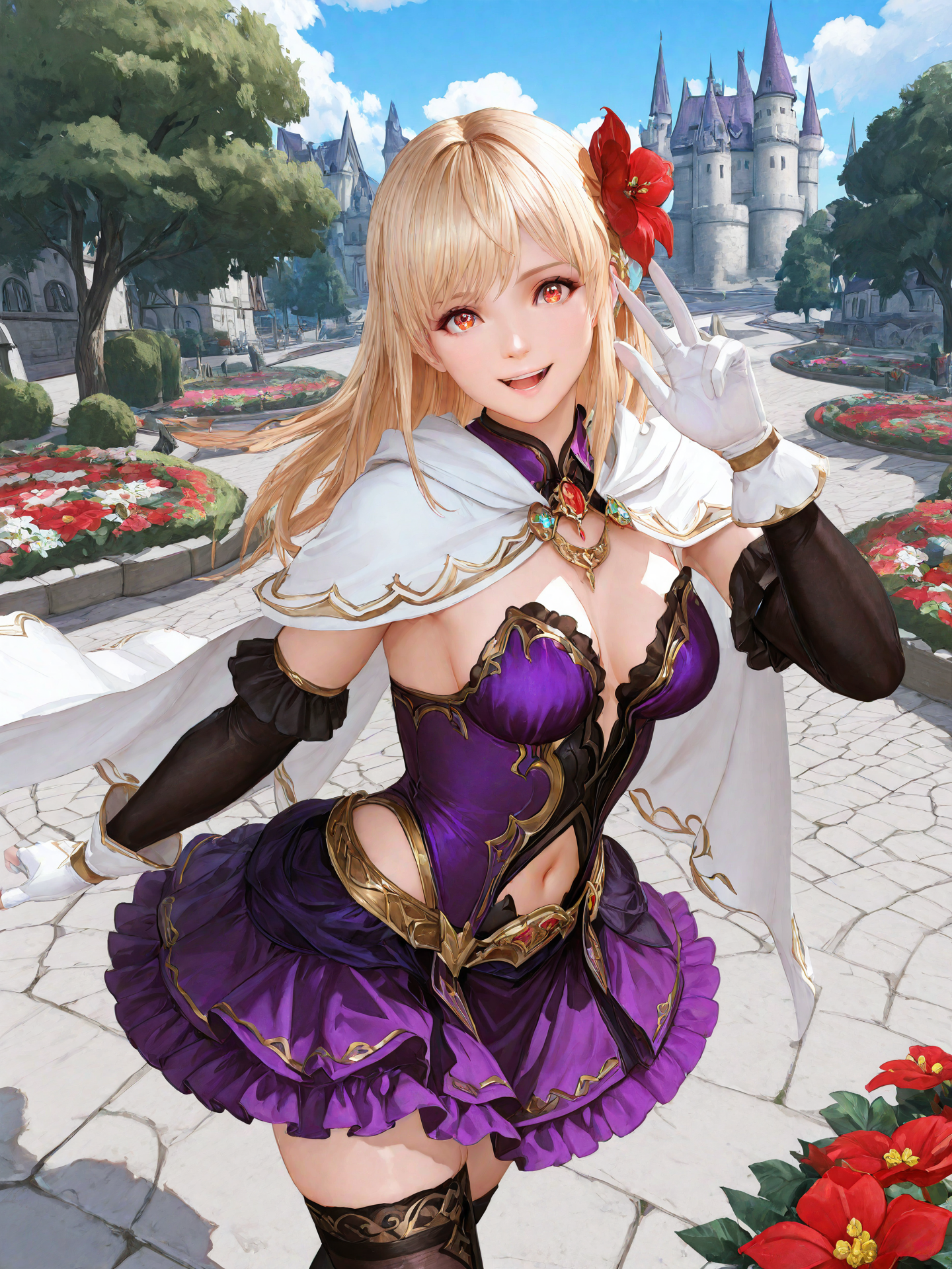fina_s4、金髪、ロングヘア、髪の花、髪飾り、中程度の胸