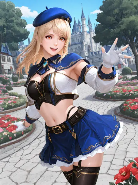 fina_s3、金髪、ロングヘア、青いベレー帽、中程度の胸