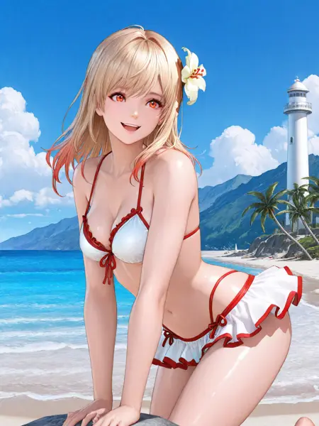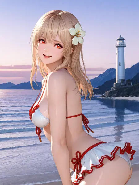 fina_swimsuit、金髪、ロングヘア、髪の花、髪飾り、中程度の胸