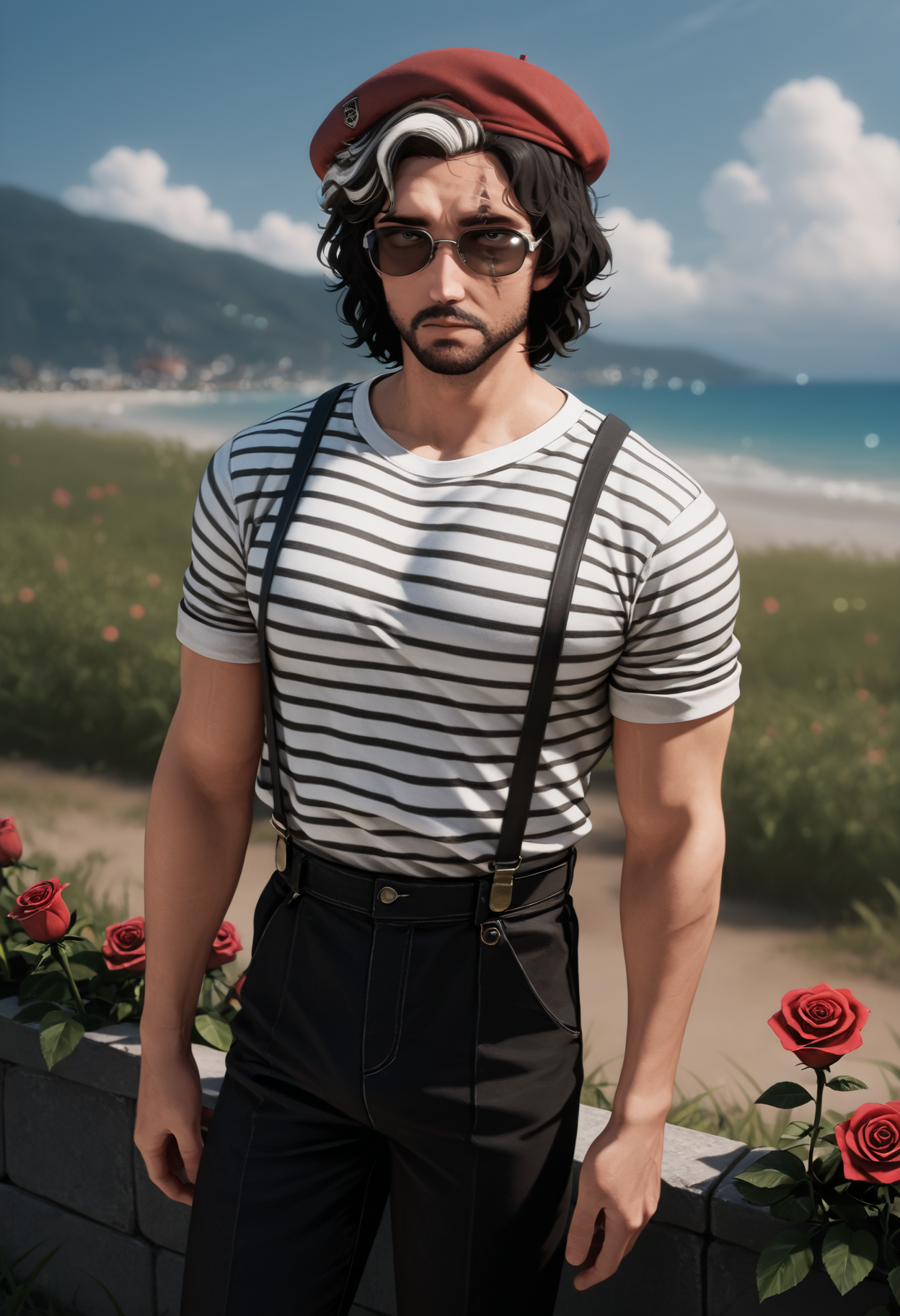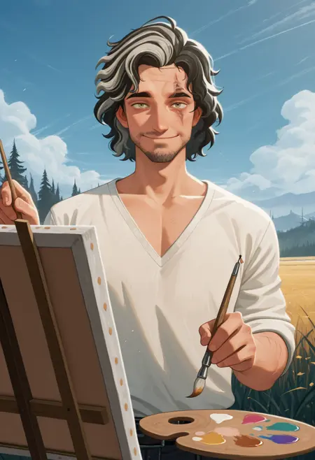 The main tags are "versoe33, multicolored hair, scar across eye"
