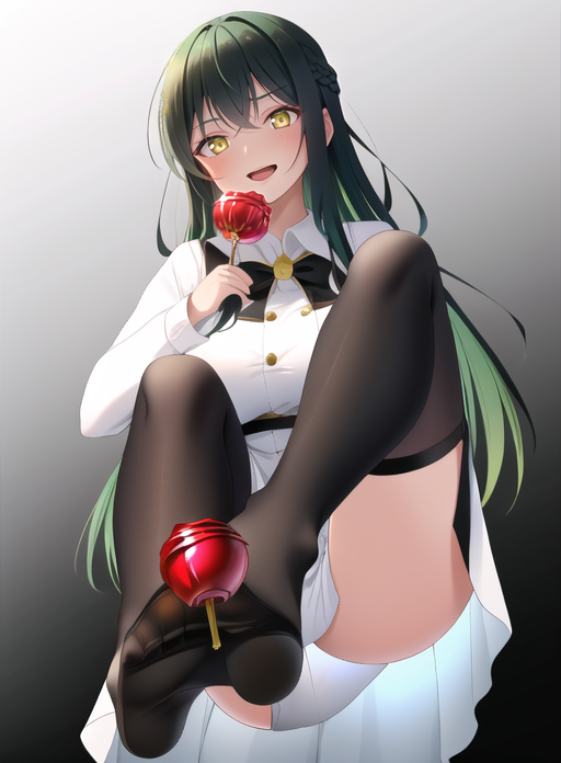 动漫女孩用脚趾夹着东西,通常是食物。美味享用~