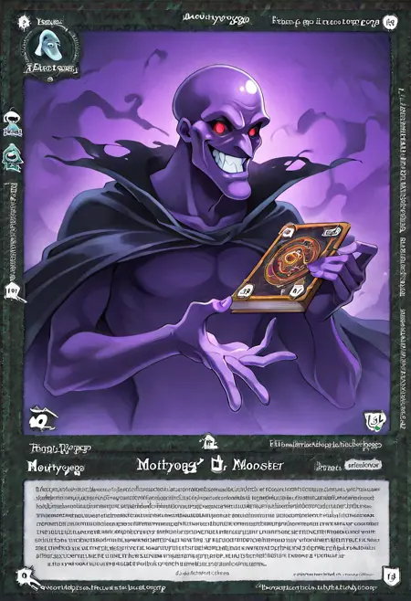 motyogo,幽灵怪物,搞笑幽灵怪物,紫色皮肤,卡片,书本,英文文字“Leah”,黑色HKK卡框,卡片,motyogo战士,搞笑战斗姿势,