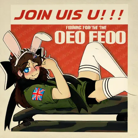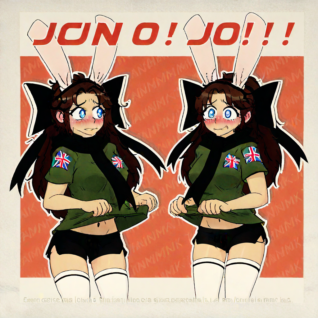 faux, brown ponytail, black hairbow, light blue eyes, brown bunny ears, combat goggles on head