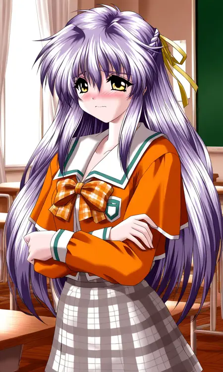 「악몽」에서 히로인 중 한 명인 니시쿠지 오넨 씨의 LoRA입니다. 부유한 재벌가의 딸로 자존심이 강하고 강한 성격을 지녔지만, 실제로는 키 165cm의 장신에 가슴이 작아 빈유(소설판에서 확인된 바에 따르면 A컵)라는 자신의 체형에 강한 콤플렉스를 느끼고, 이를 부끄러워하는 소녀입니다. 원작 게임과 소설에서는 단지 성격이 강할 뿐 악녀는 아니지만, 만화판에서는…(아래 설명)