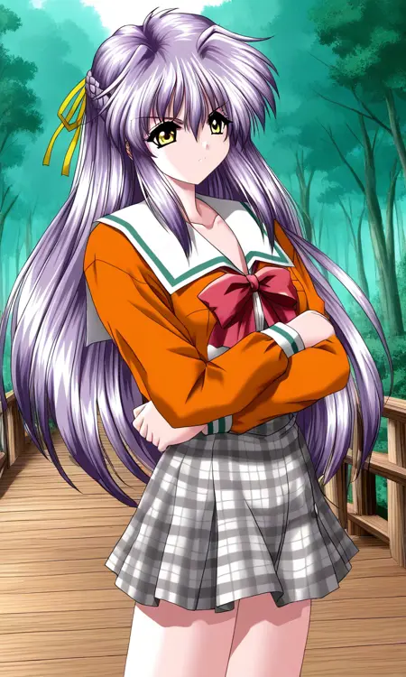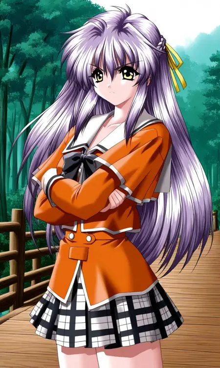 「悪夢」よりヒロインの一人、西九条紫音ちゃんのloraです。大金持ちの財閥の娘であり、プライドが高く強気な少女だが、実は身長165cmの長身に対して胸が小さい貧乳(小説版で判明しているが、Aカップ)という自分の体系に強いコンプレックスをもっており、それを恥ずかしいと思っている女の子。原作ゲームと小説では気が強いだけで別に悪い子ではないのだが、漫画版では・・・(後述)