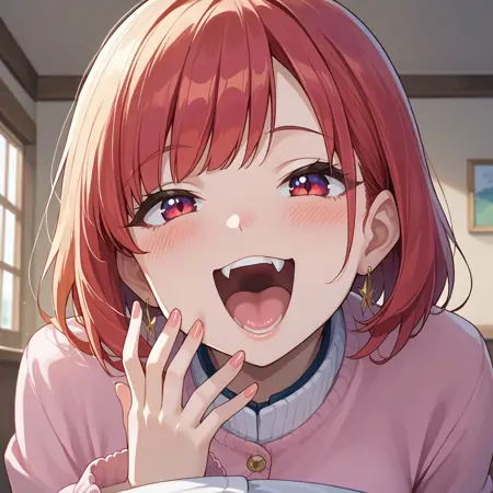 このキャラクターがあくびをして、その牙を見せているというアイデア、本当にかわいい!だから、絶対にこれ用のLoRAを作らなきゃ!