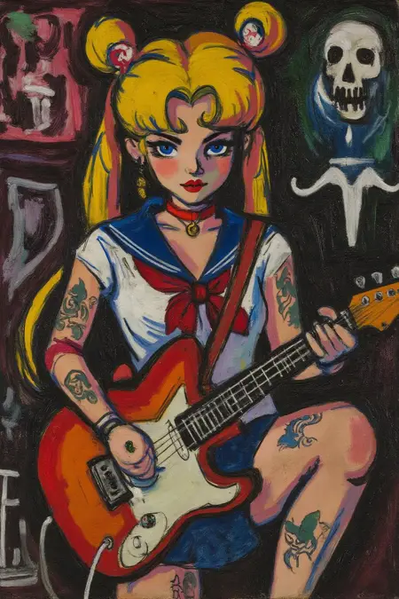 Most of his works are landscape, with a few portraits. What I found most interesting is how well this LoRA works as a portrait style, with strong brushstrokes and bold lines that remind me of that of Alice Neel 😁.