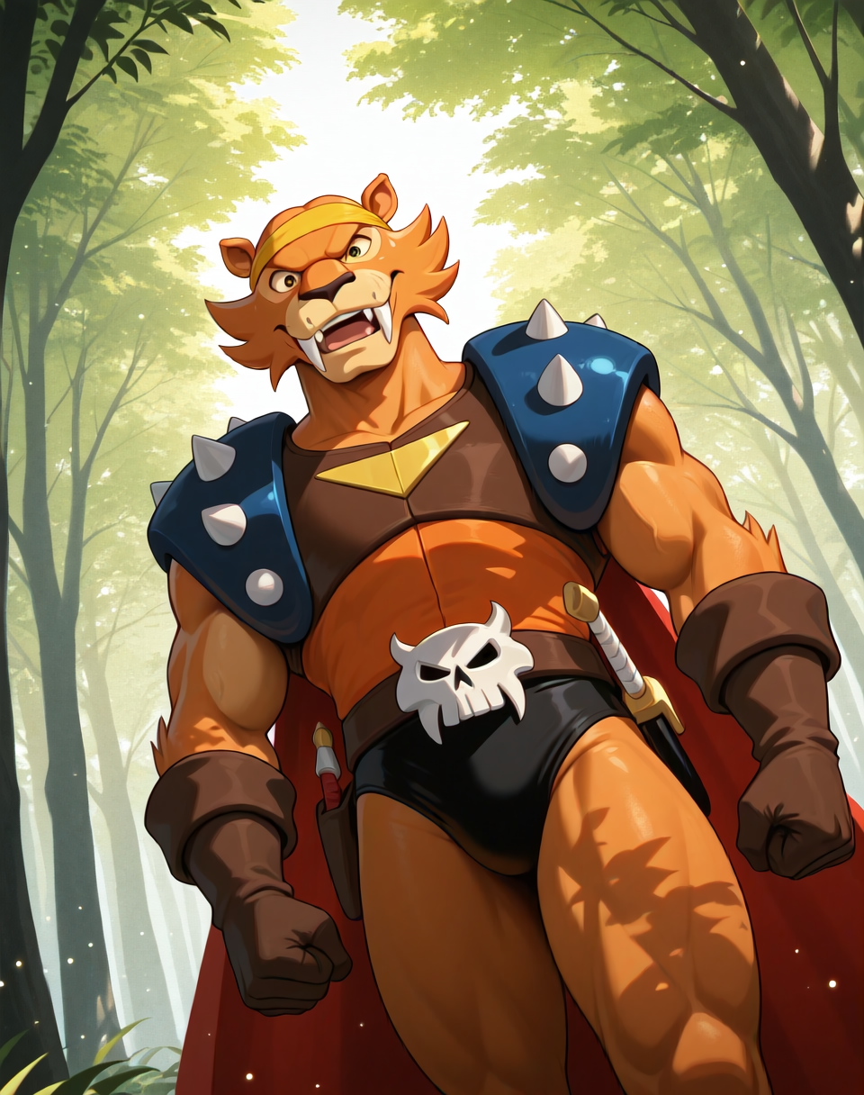 这是一个用于卡通《恐龙特急克塞号》中角色“剑齿虎船长”的精美风格LoRA。