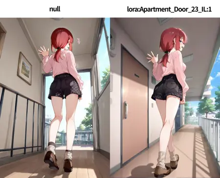 이 LoRA는 아파트 공용 복도를 생성합니다. 공용 복도에서 어떤 드라마가 펼쳐질까요?