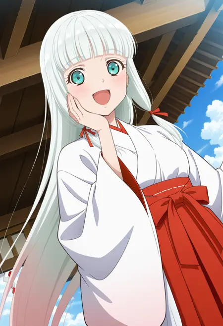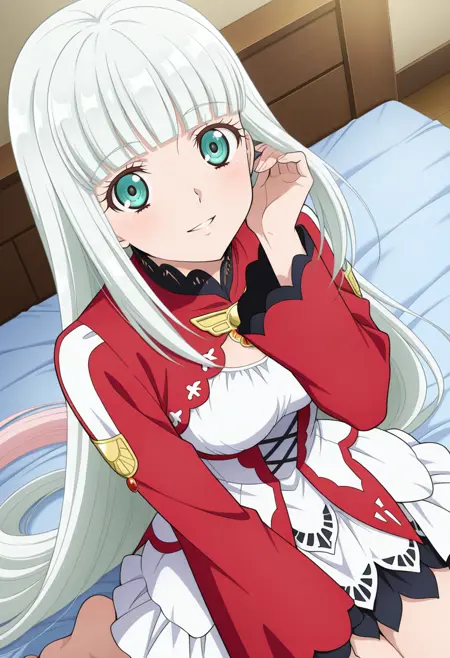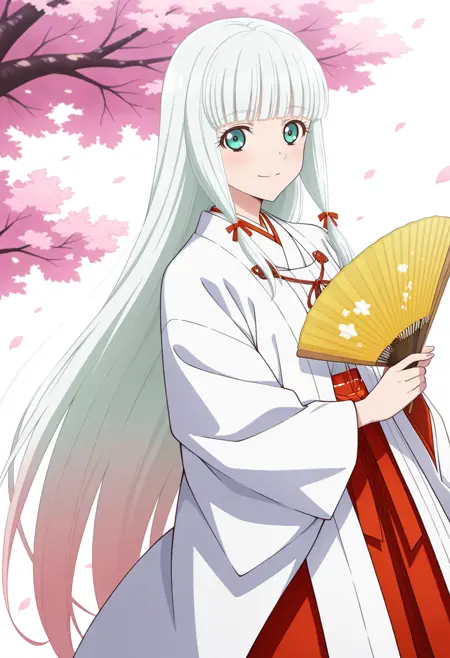 lailahrnd, gradient hair, silver hair, aqua eyes, very long hair, straight hair, blunt bangs, tied sidelocks,