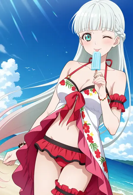 lailahdef, silver hair, very long hair, multicolored hair, blunt bangs, pink hair, ponytail, aqua eyes,