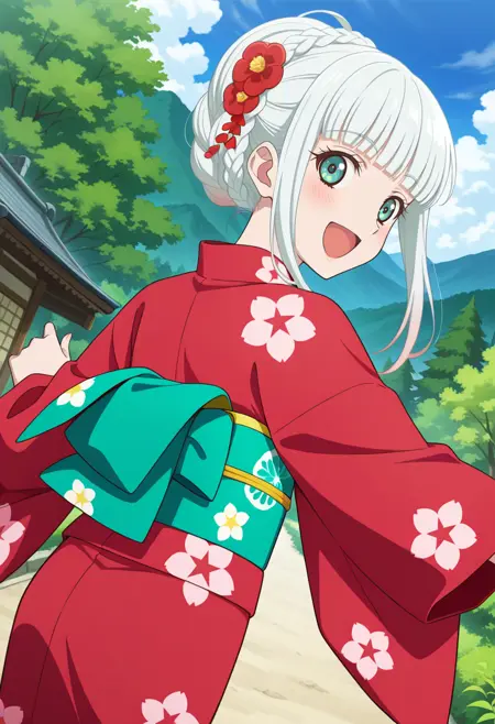 lailahrnd, gradient hair, silver hair, aqua eyes, blunt bangs, tied hair, sidelocks, short hair, braid,