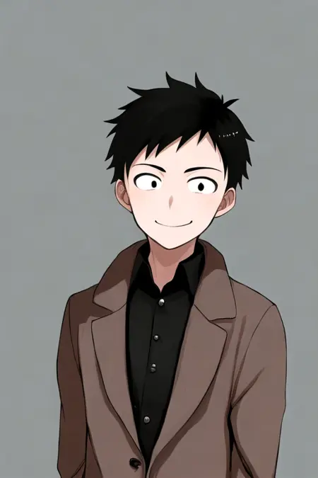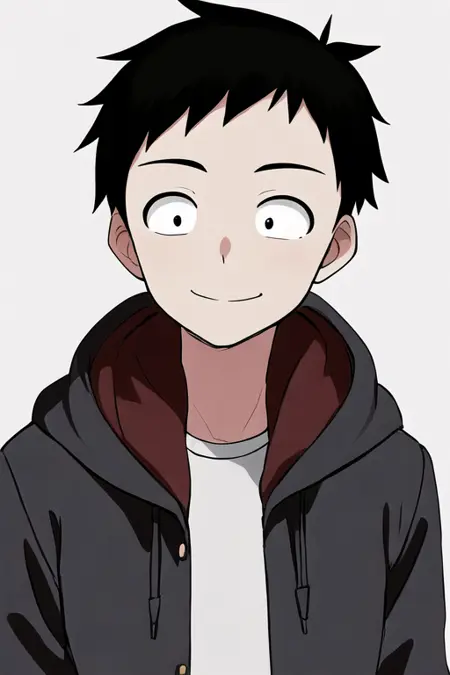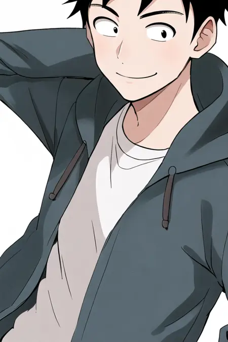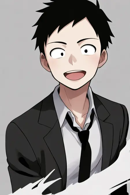 adultNishikata, 1boy, black eyes, dot pupils, sanpaku black hair, short hair