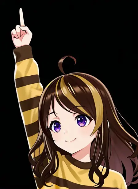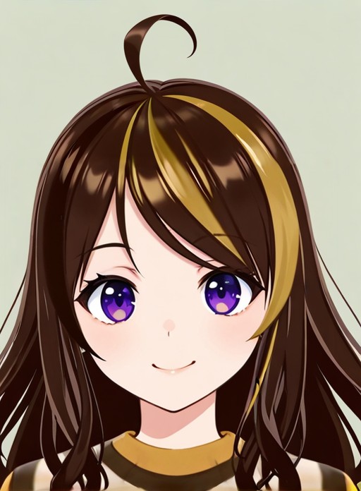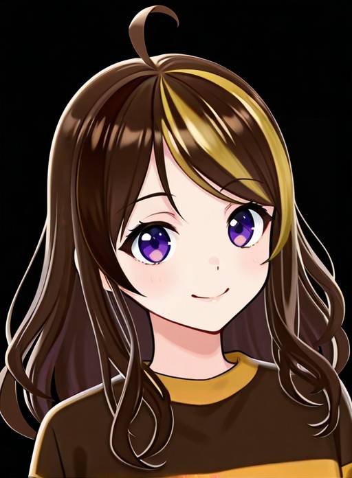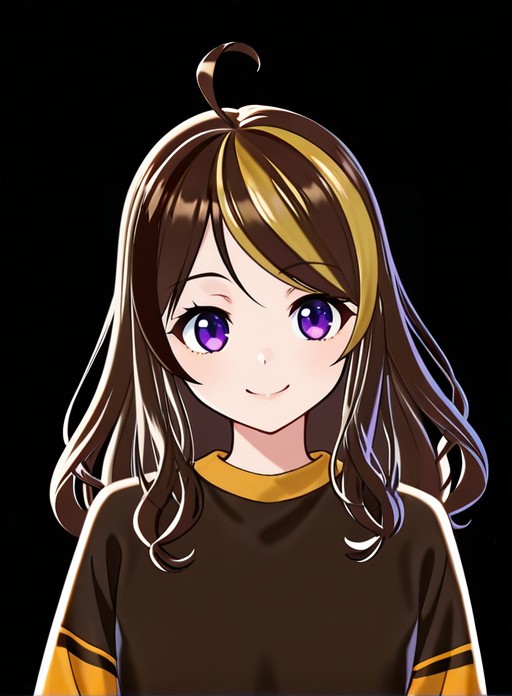 KiaraFey, 1girl, brown hair, long hair, multicolored hair, purple eyes, blonde hair, streaked hair, ahoge,