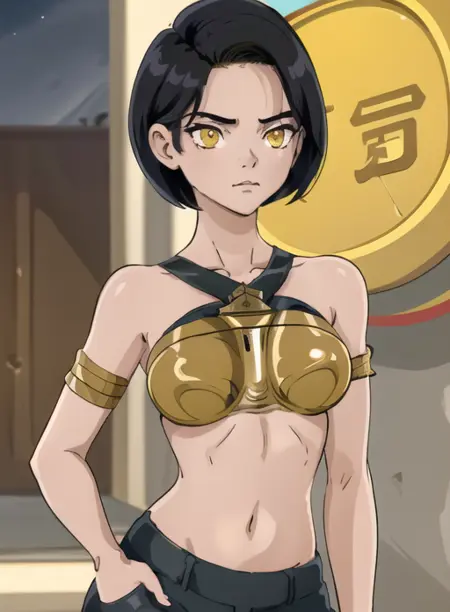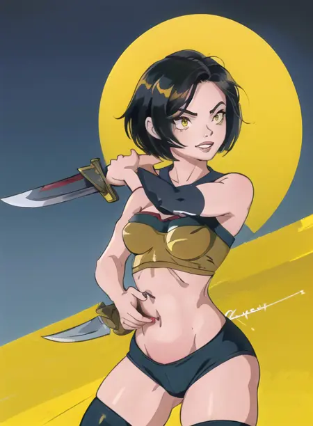 artemisa, dlh, short hair, black hair, yellow eyes