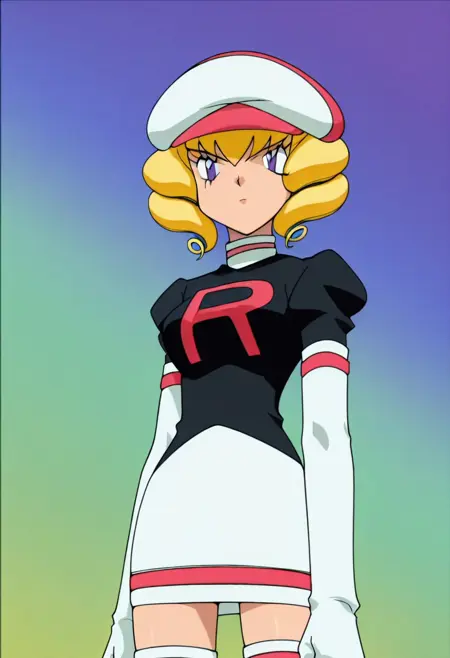| 训练词汇 | PKMNDomino, 1girl, blonde hair, short hair, eyelashes, blue eyes, purple eyes, drill hair, bangs, 已复制! team rocket, team rocket uniform, gloves, elbow gloves, white skirt, skirt, white gloves, thighhighs, thigh boots, jacket, zettai ryouiki, boots, white footwear, breasts, high heel boots, shirt, high heels, short sleeves已复制! |