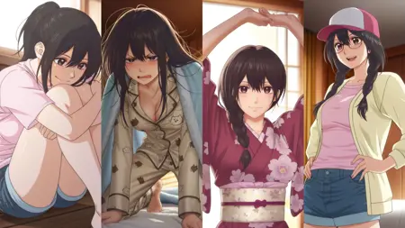 外观: S4t0w4, 1girl, 黑发, 发丝遮眼, 长发, 刘海