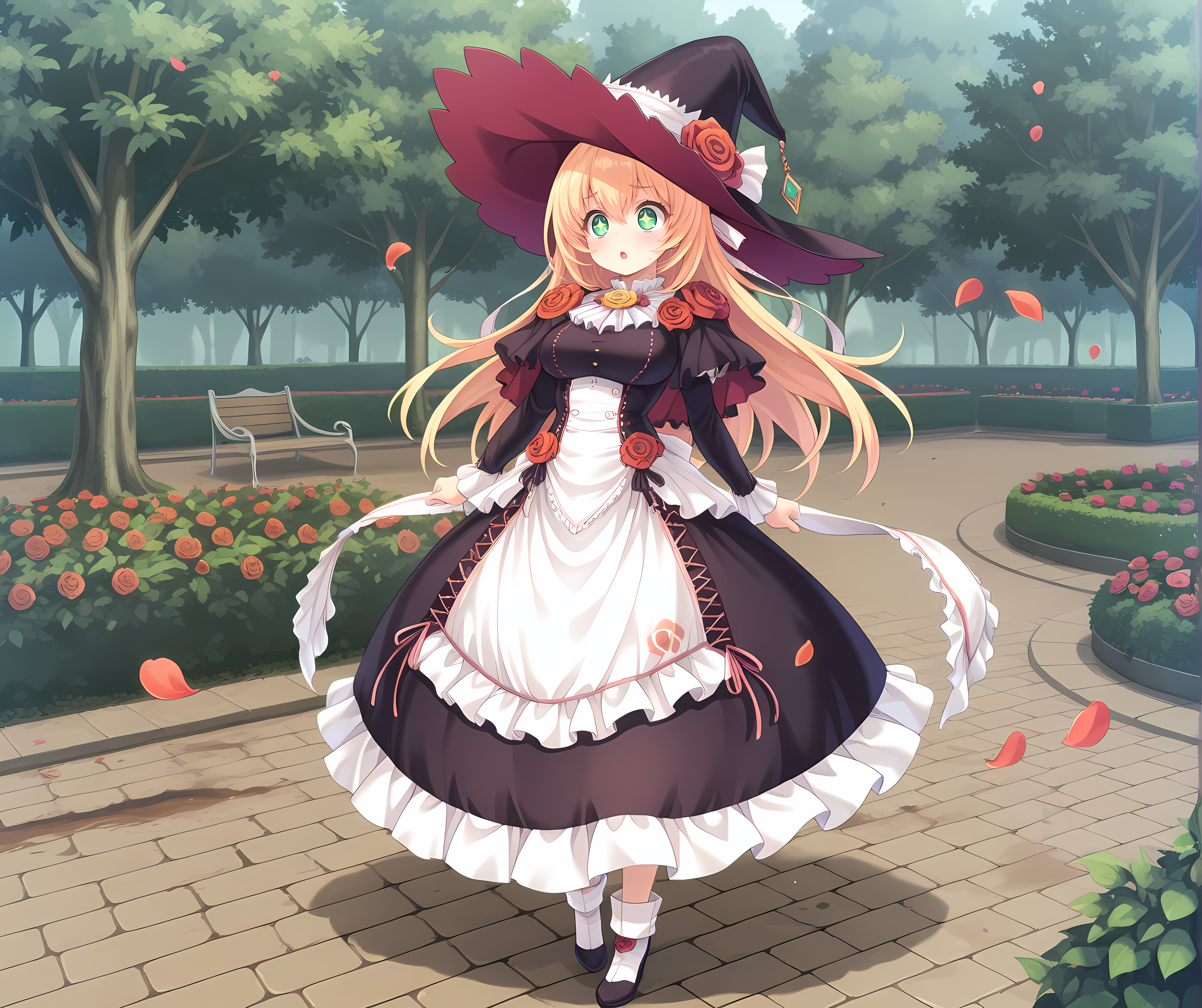 rose, hair ribbon, witch hat,