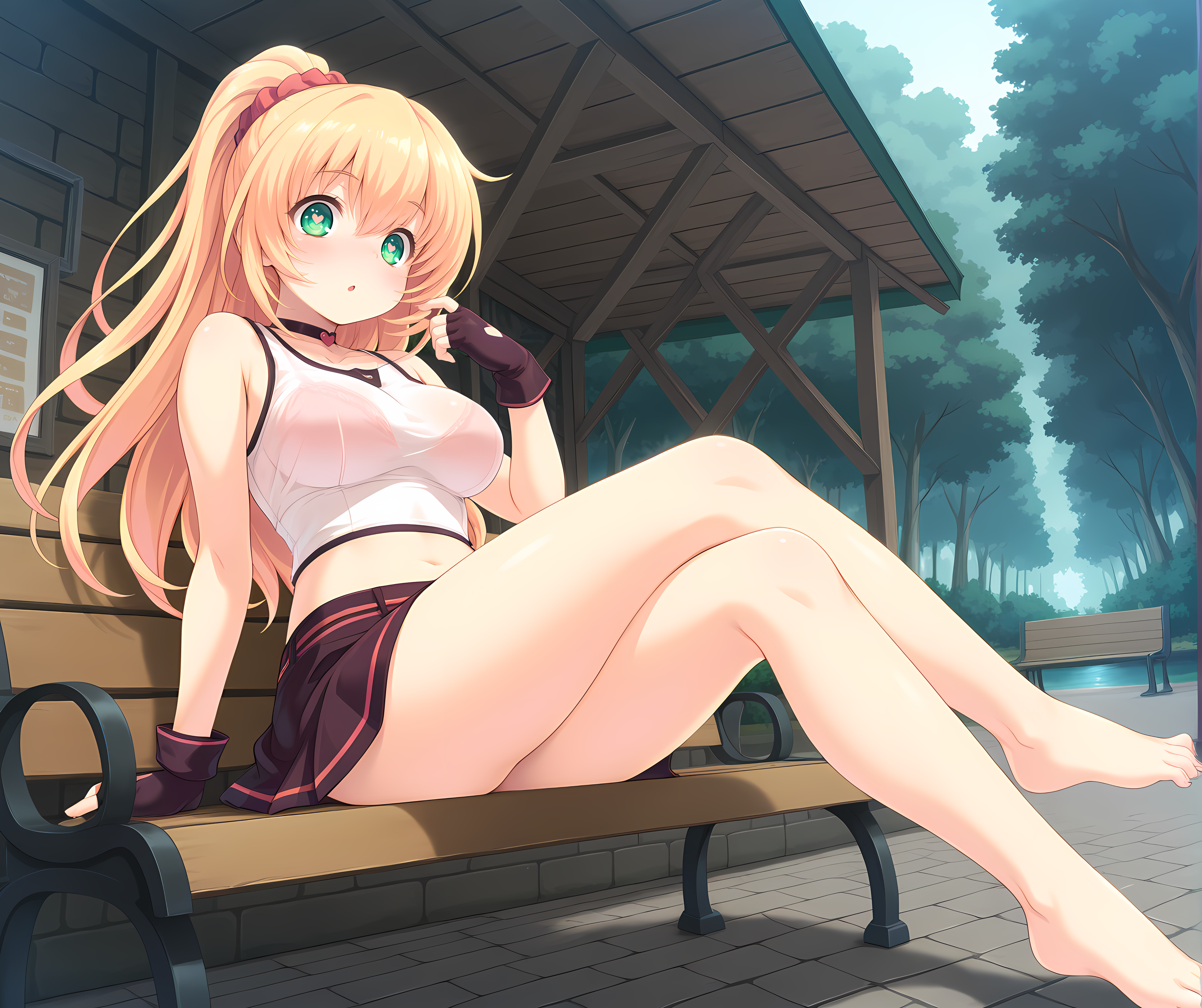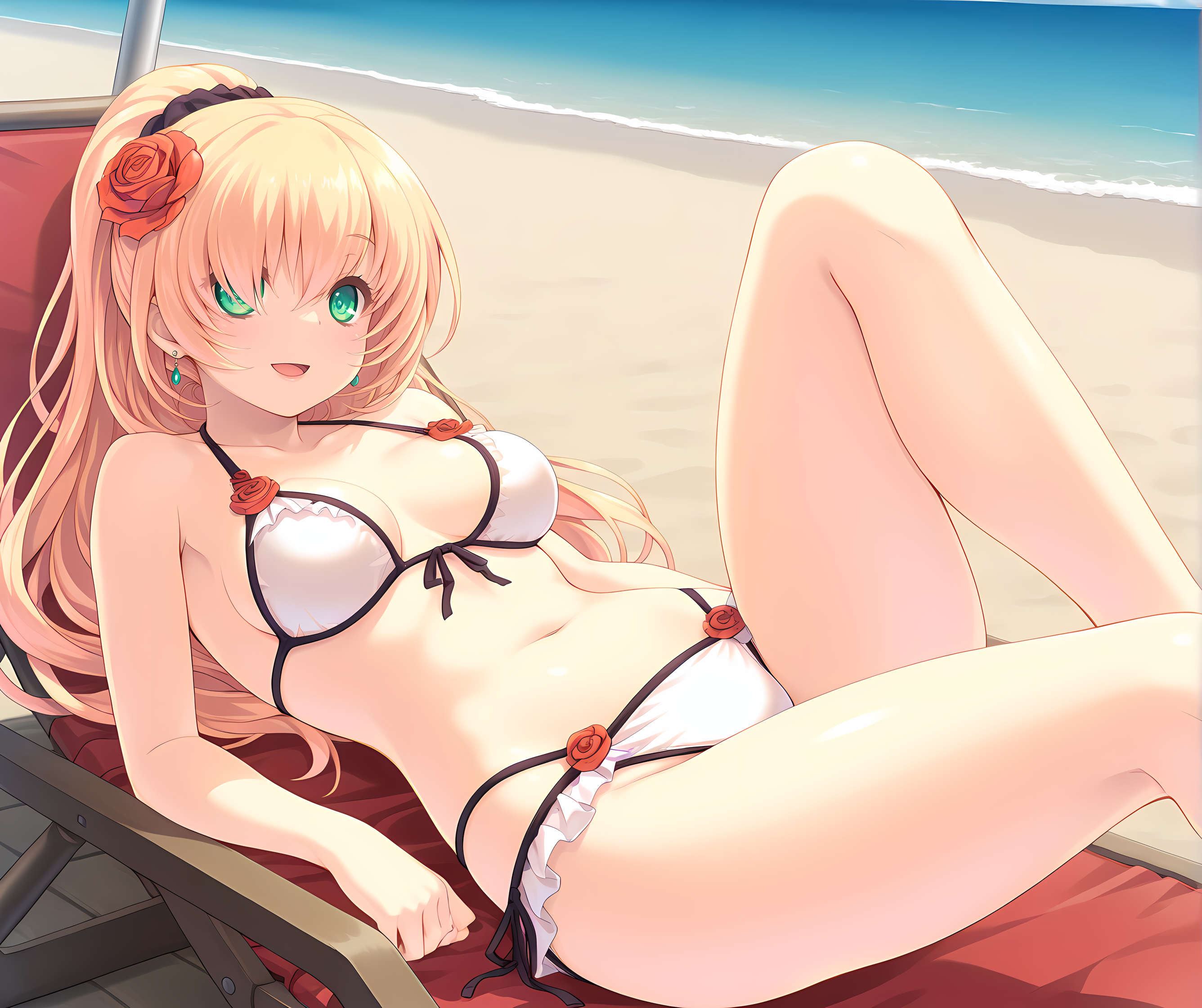 blonde hair, long hair, green eyes,