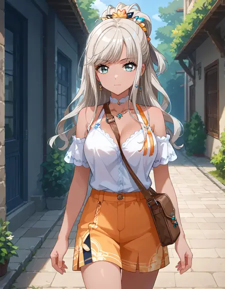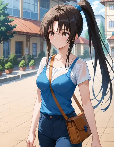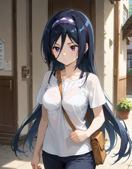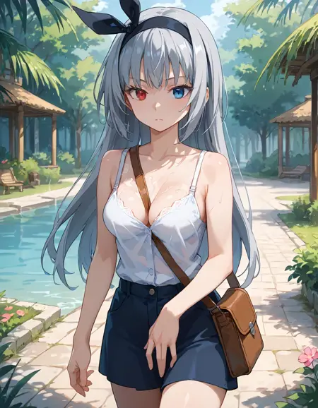 pai-sura, breasts emphasis, slant bag, bag strap passing between breasts,