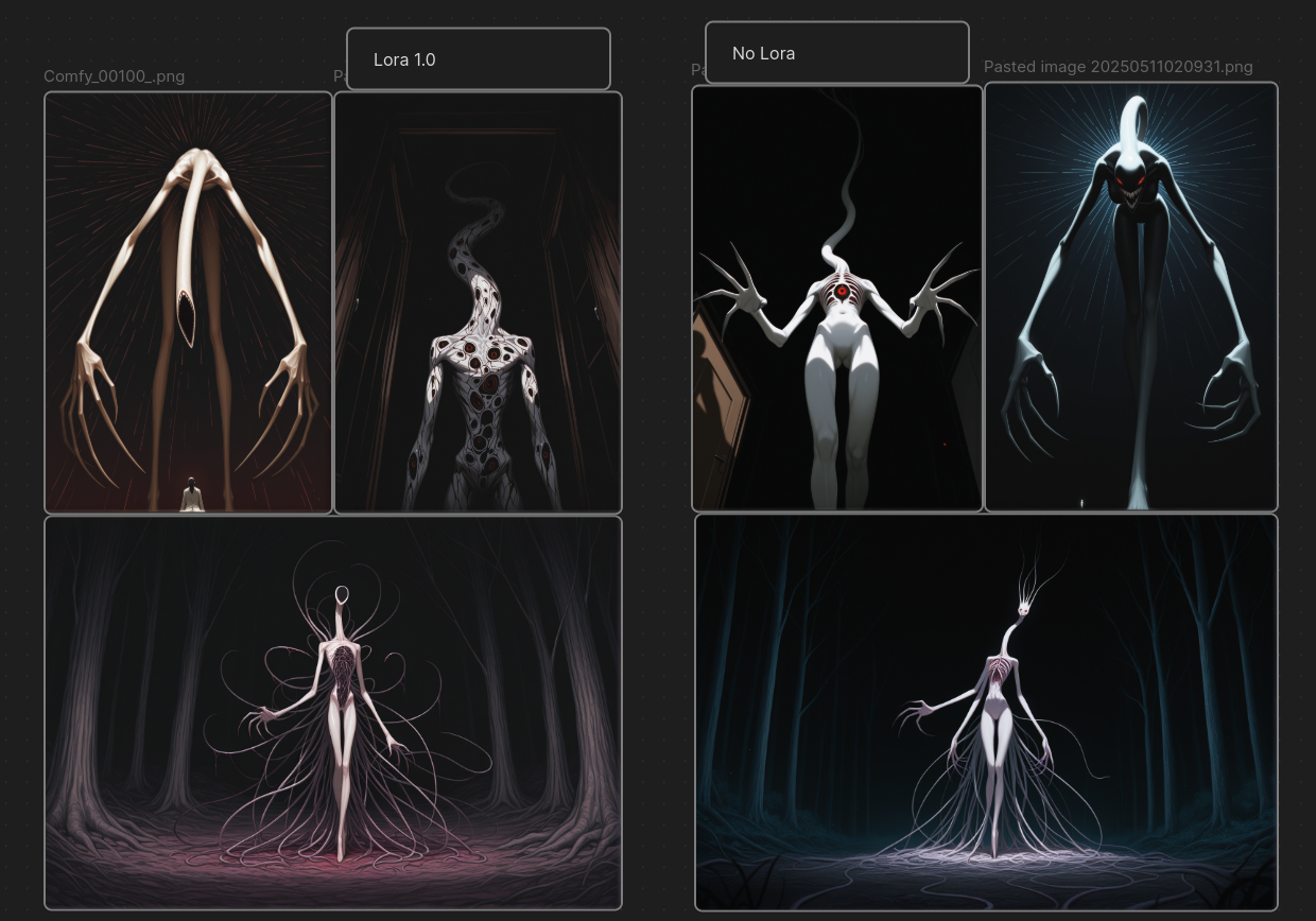 我有点喜欢生成令人毛骨悚然的图像,但如果没有合适的恐怖LoRA,一些模型往往会“性感化”输出结果。我不希望我用AI生成的那些超越理解的恐怖生物,拥有能生育的骨盆!