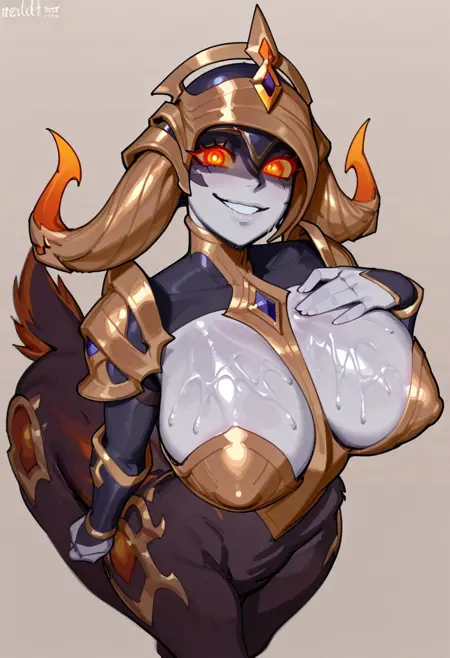 ヘルメット, 金の縁取り, パウルドロン, 胸板, ボディスーツ, ディアデム, 腹部露出, セクシーな衣装, 部分的なヌード,