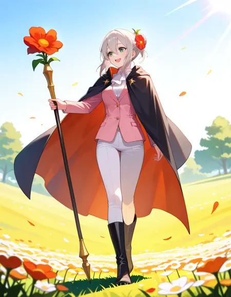 EffieFE, green eyes, silver hair, ponytail, 1girl, lips