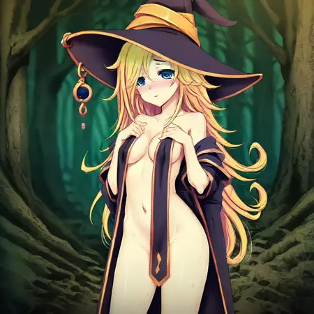 标签:维薇安、金发、蓝眼、长发、女巫帽、法杖