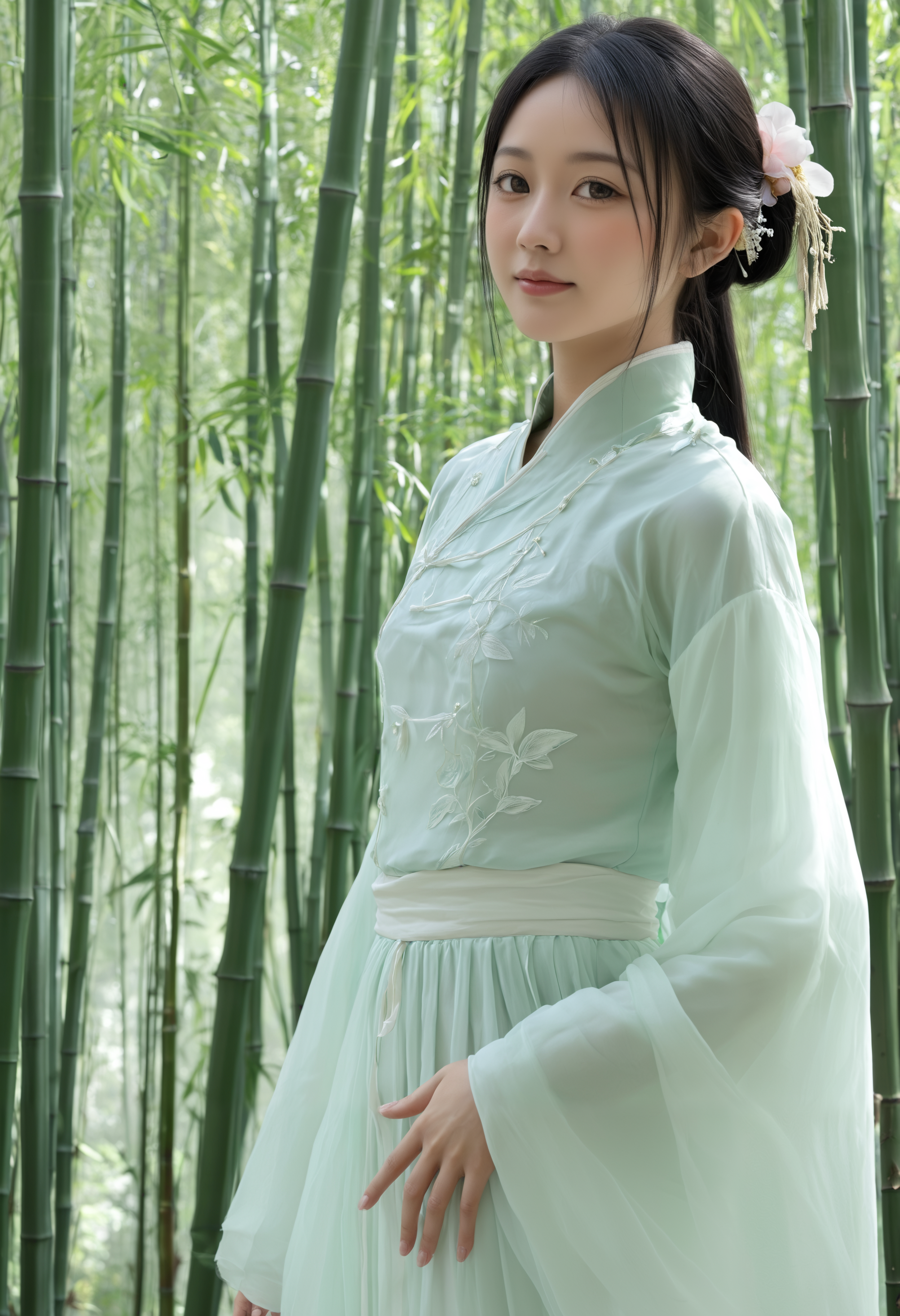 Specializes in generating young women with black hair, soft facial features, large expressive eyes, and elegant demeanor, embodying typical East Asian aesthetics.