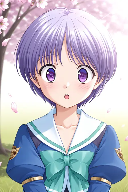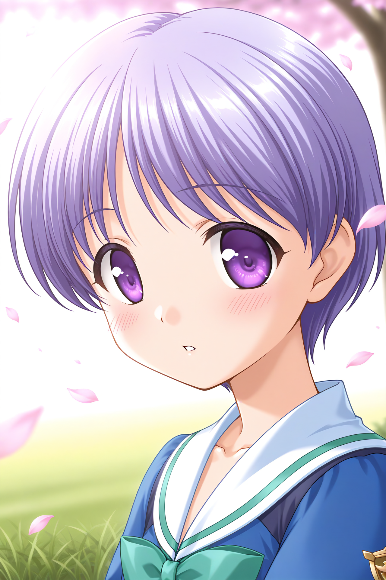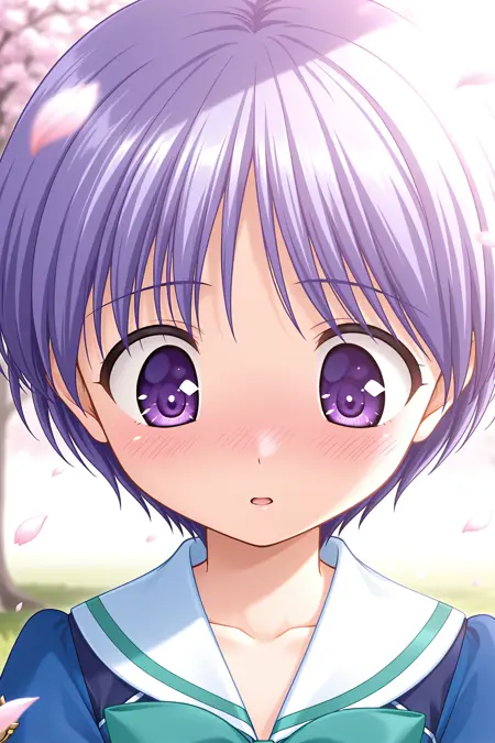 tachibana chihiro,purple eyes,light purple hair,short hair,bangs,