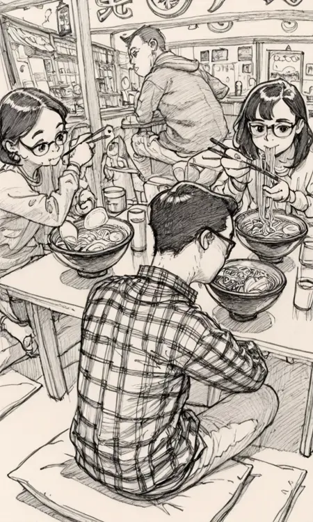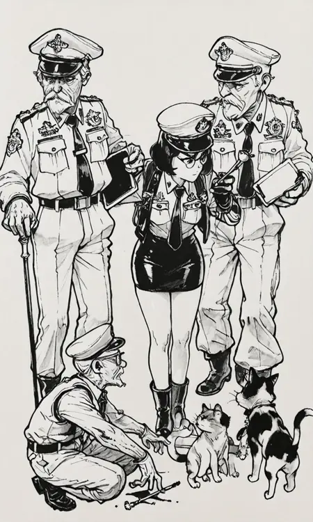 추천 태그: ink drawing, dynamic composition, line art, black and white, sketch style