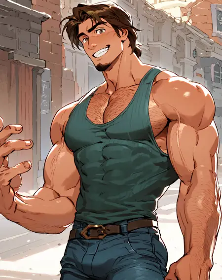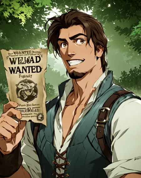 Eugene Fitzherbert Flynn Rider is a real gentleman: he will steal your wallet, your bag, your goods... and also your heart. No girl can resist to his flirty smile, that goatee, that manly scent, that hairy chest beneath his vest, his strong forearms. Unfortunately he has an ugly nose, a well known fact from his wanted posters.