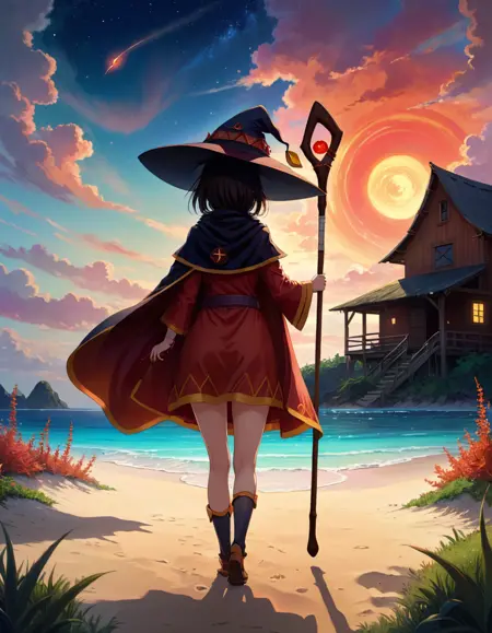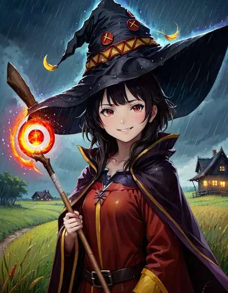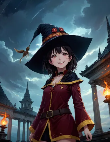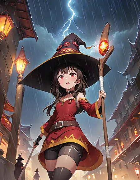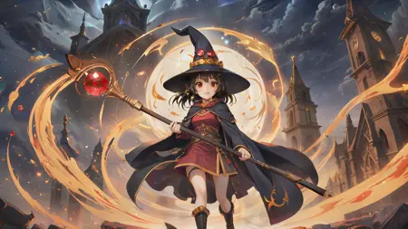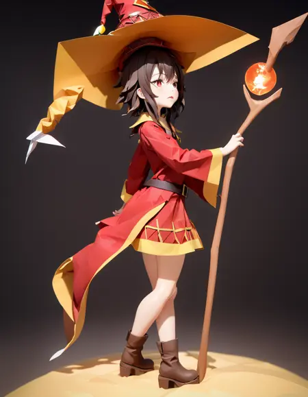 プロンプトには「megumin」を含める必要があり、以下のような装備を追加できます:
