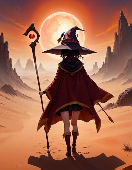 杖自体はやや不自然になることがありますが、「megumin」と言及せずに「staff」のみをプロンプトとして用いてインペインティングを行うと、より良い結果が得られるでしょう。