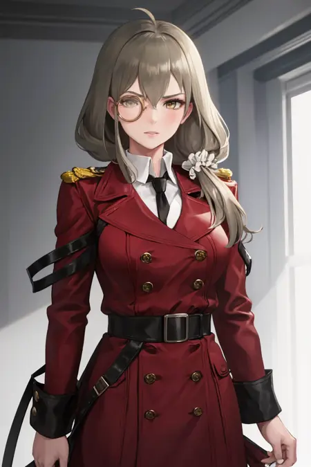 heliandef, 돋보기, 머리끈, 군복, 빨간 코트, 넥타이, 벨트