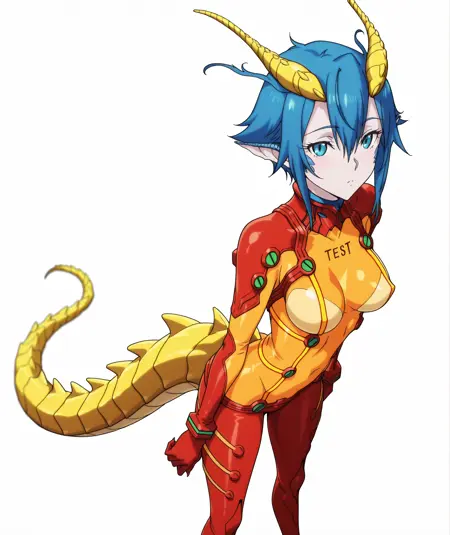 뿔, 뾰족한 귀, 몬스터 소녀, 드래곤 뿔, 드래곤 소녀, 드래곤 꼬리, 꼬리, 금색 꼬리, 낮은 날개, 미니 날개, 날개, 발톱, 색상이 있는 피부, 비늘, 파란 비늘, 드래곤 날개, 파충류 소녀,